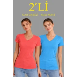 3lü V Yaka Tişört – Kısa Kollu Yazlık Slim Fit Body - Pembe, Açık Mavi, Ekru