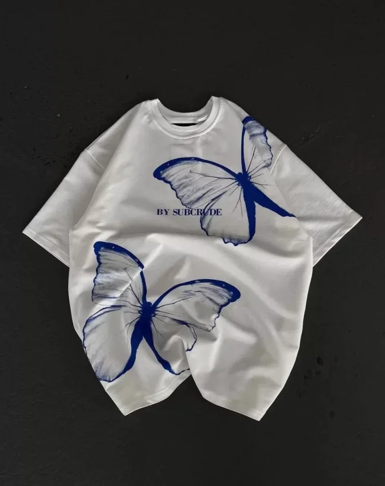 Unisex Bisiklet Yaka Baskılı Oversize T-Shirt - Beyaz