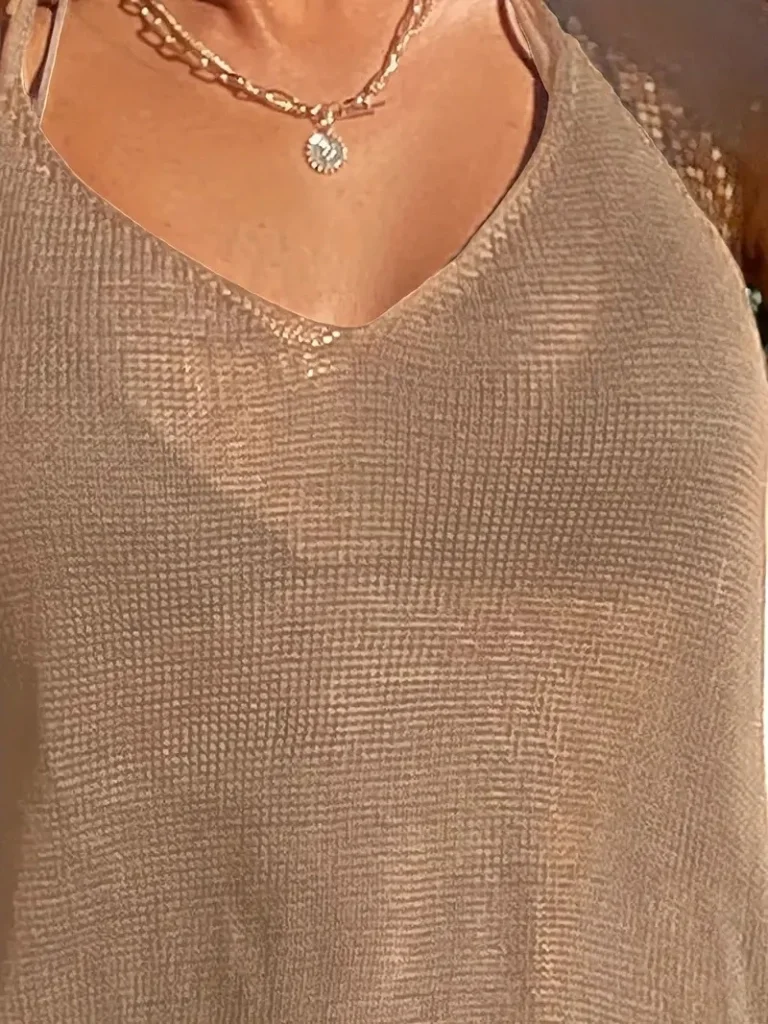 Kadın Askılı V Yaka Eteği Dijital Baskılı Dalmaçya Desen Yırtmaçlı Mikro Kumaş Elbise