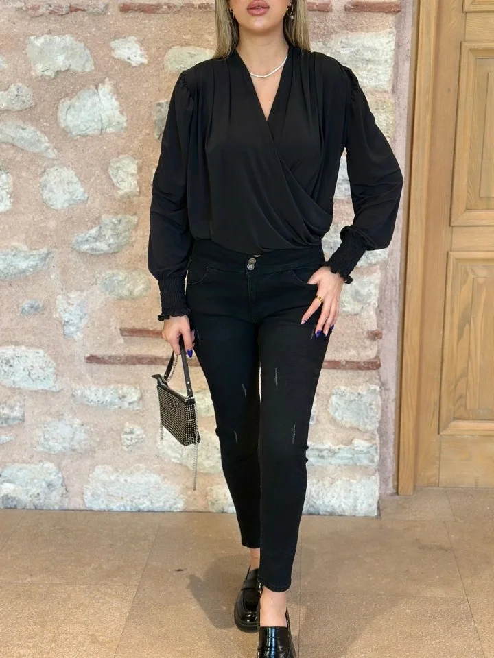 Yüksek Bel Likralı Jean Pantolon 90 Cm
