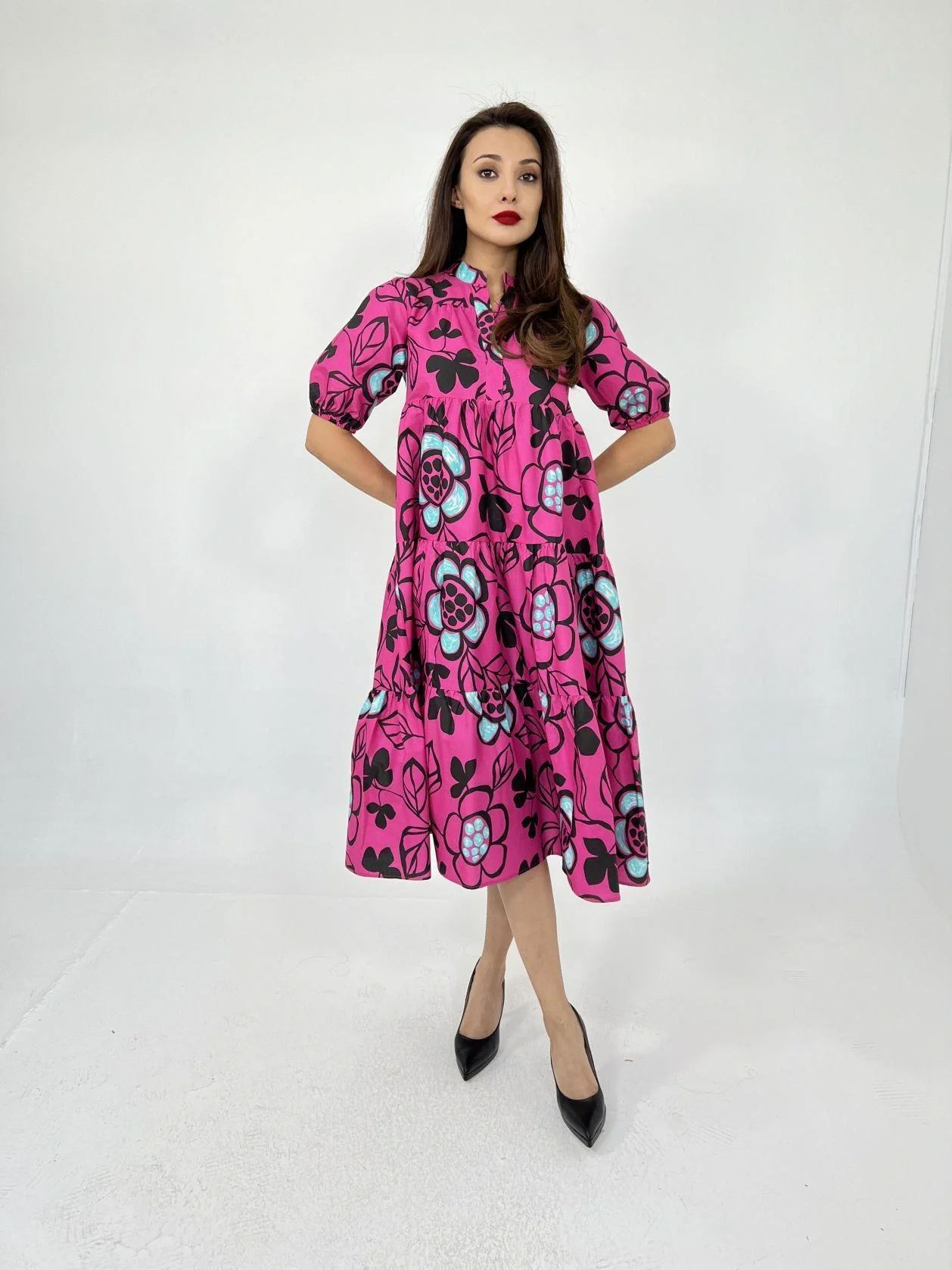 Kadın Kısa Kollu Yakalı önden Düğmeli Kısa Trikoton Elbise