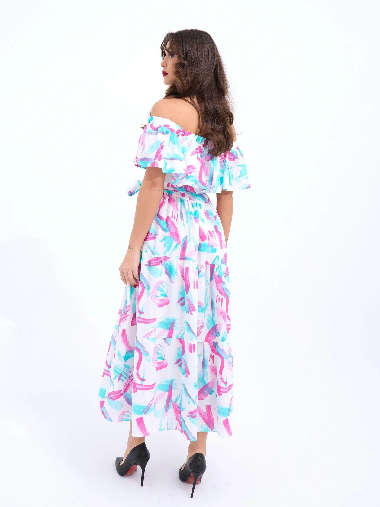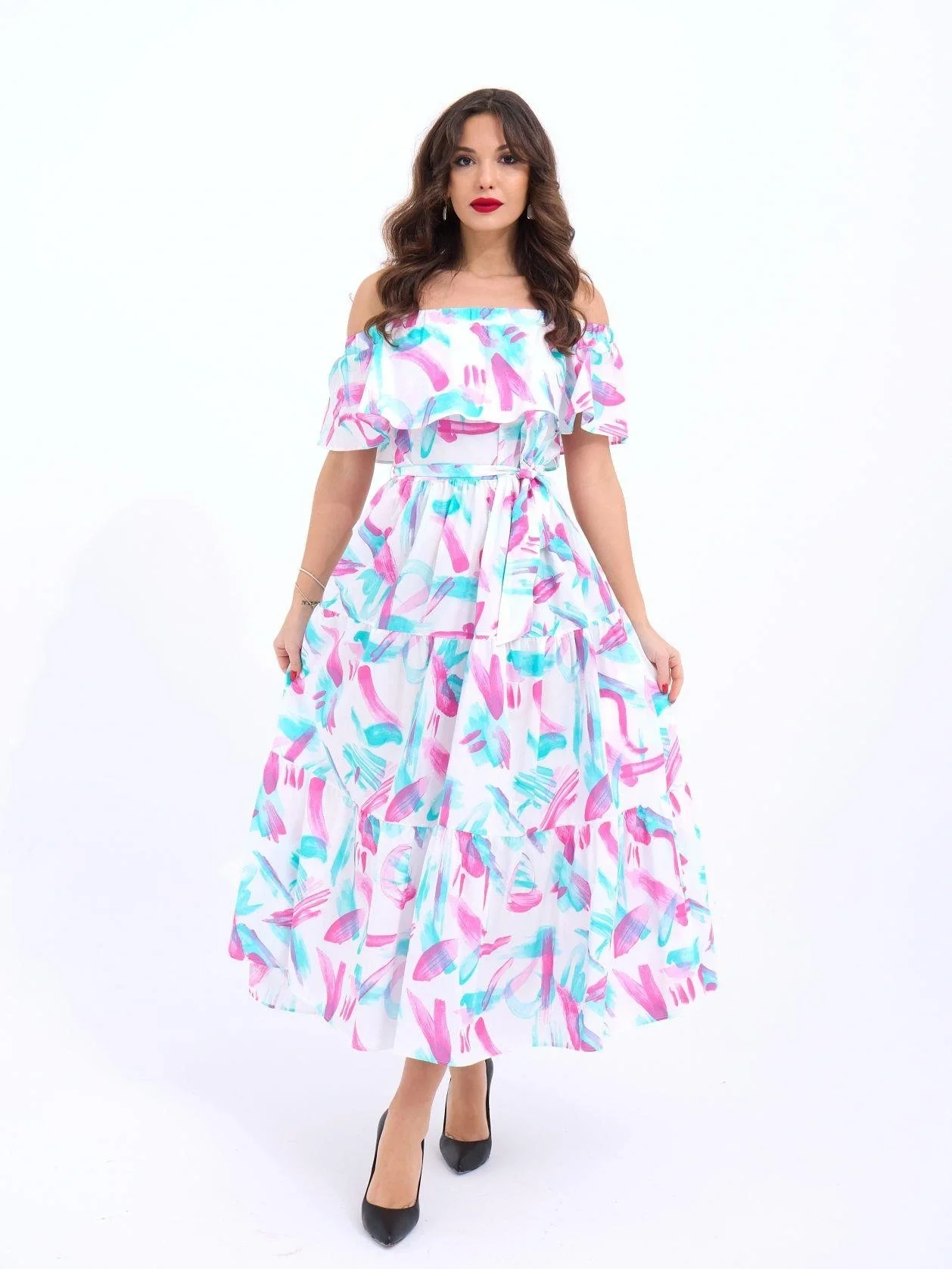 Kadın Kısa Kollu V Yakalı Maksi Boy Viskon Elbise
