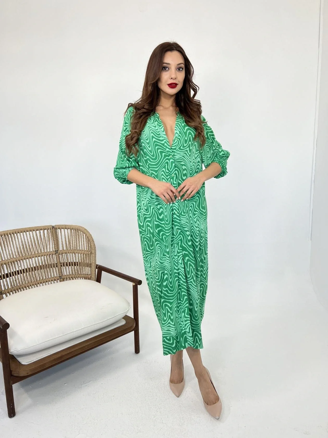 Çizgili Oversize Gömlek 20293 - E.Yeşil