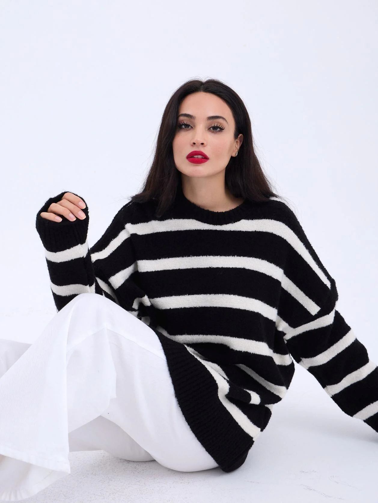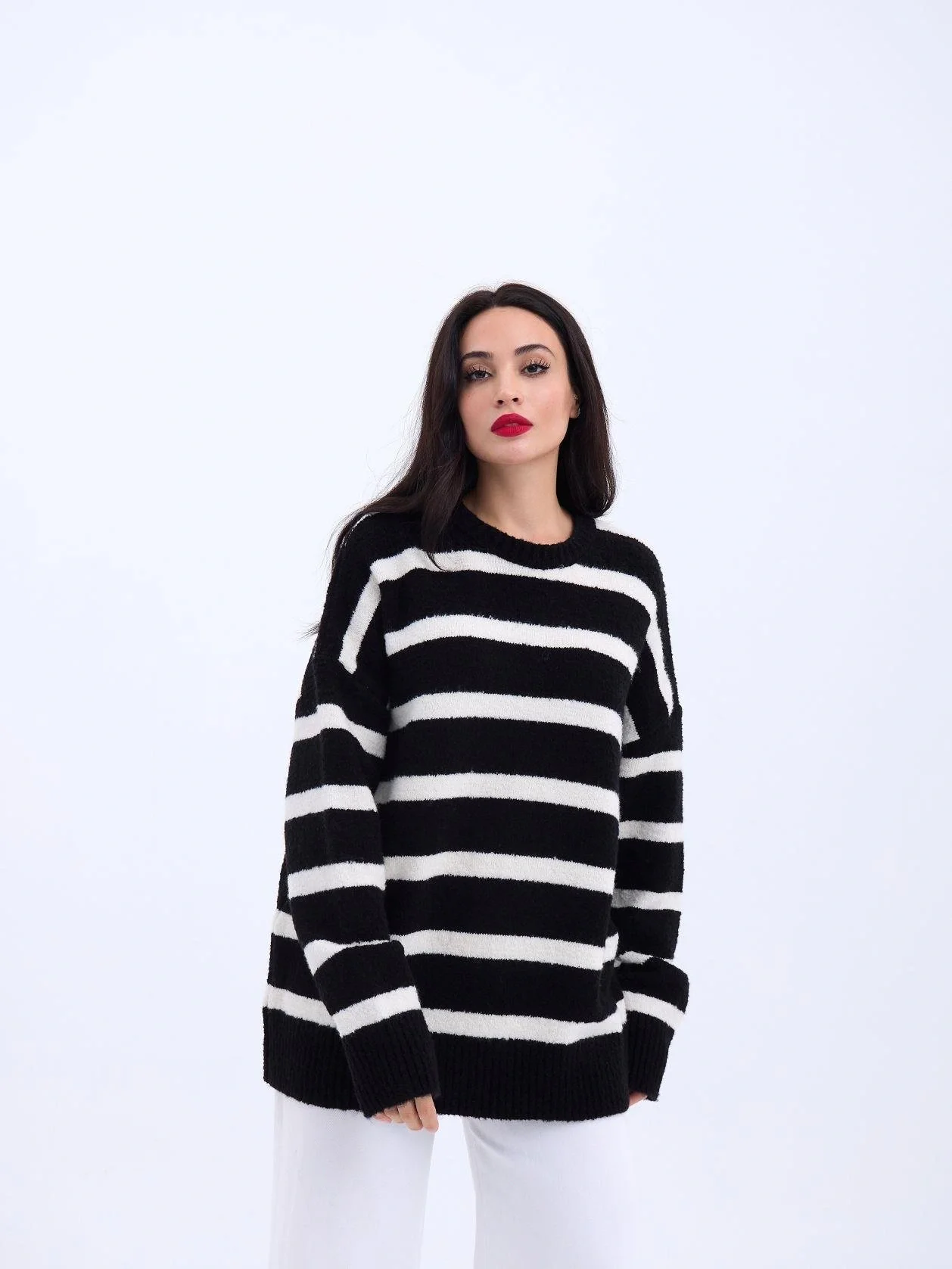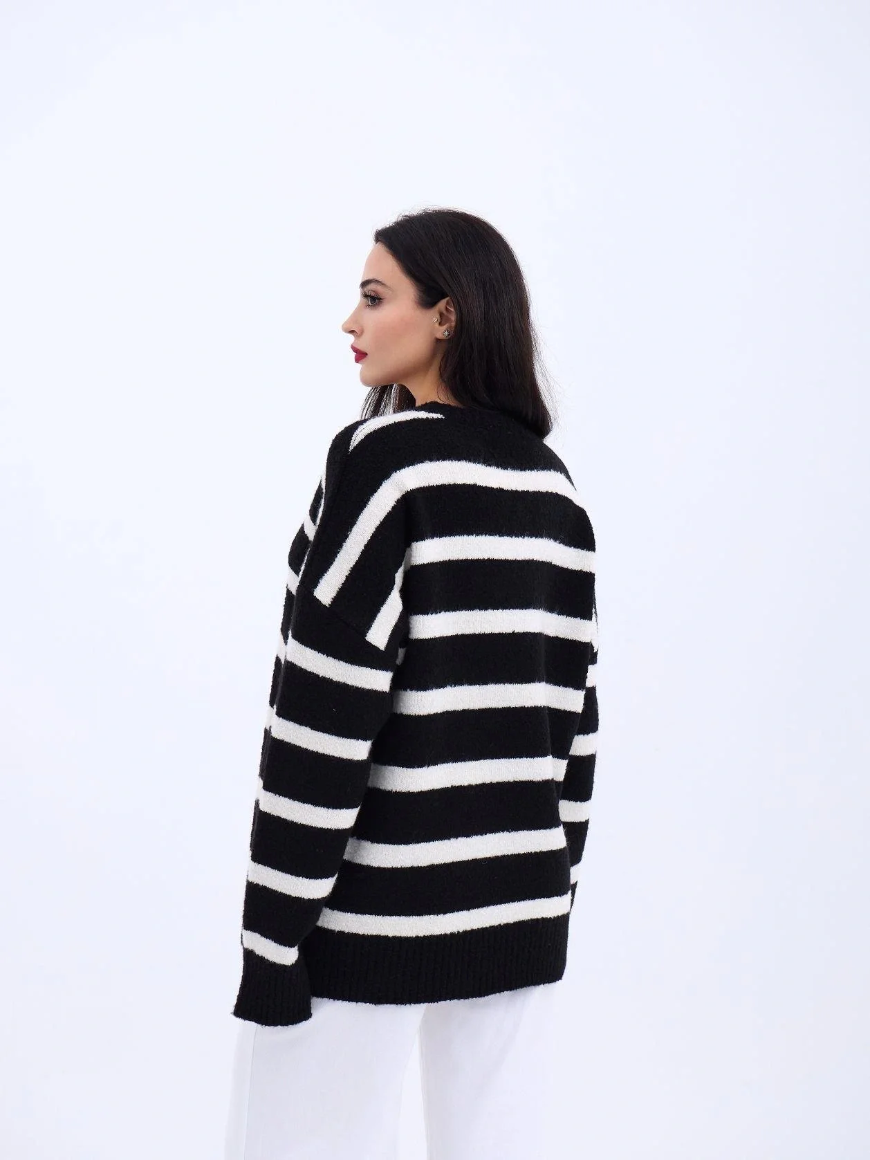 43111 TRİKO ÇİZGİLİ SALAŞ KAZAK-SİYAH-EKRU