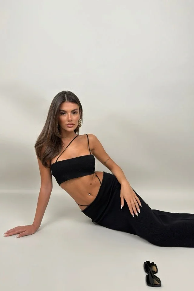 İp Detay Dokulu Maxi Etek