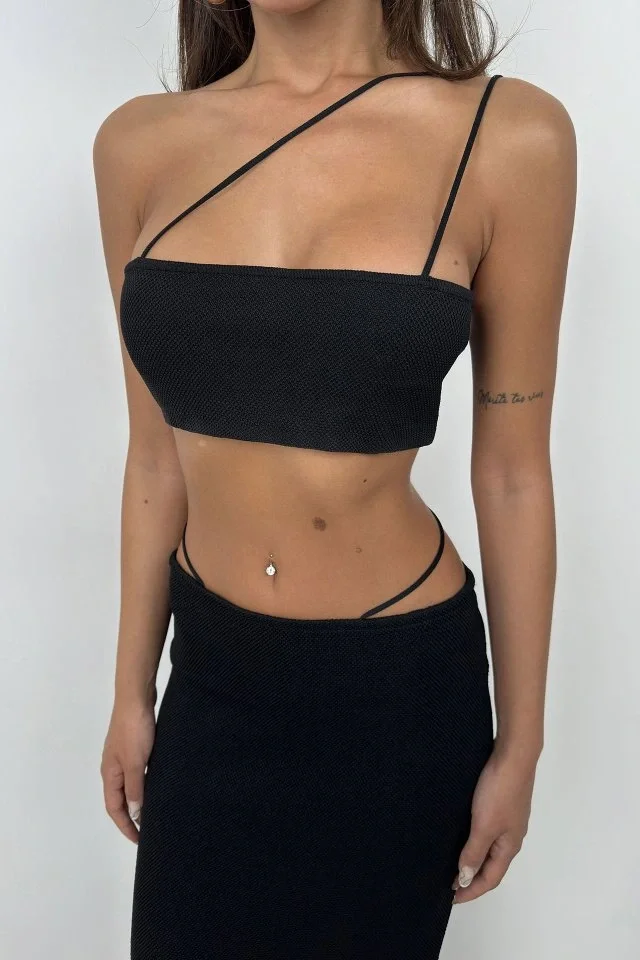 Kadın Omuz Askılı Dantel Güpür Detay Bluz
