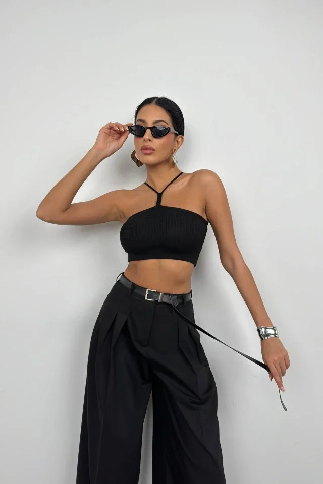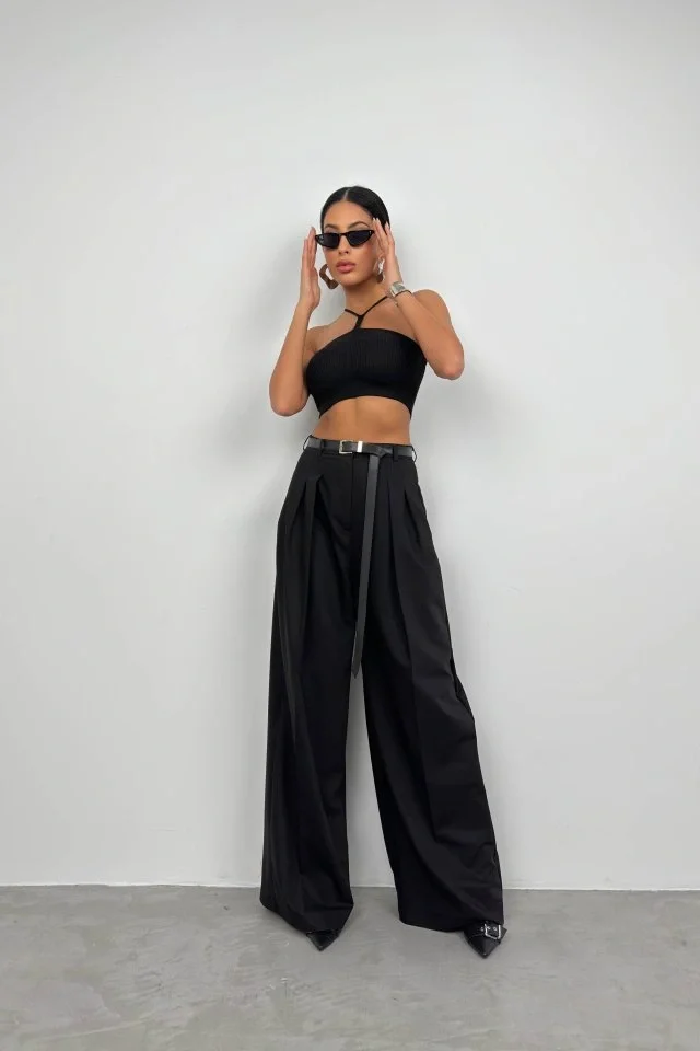 Siyah Yüksek Bel Kumaş Pantolon 6584