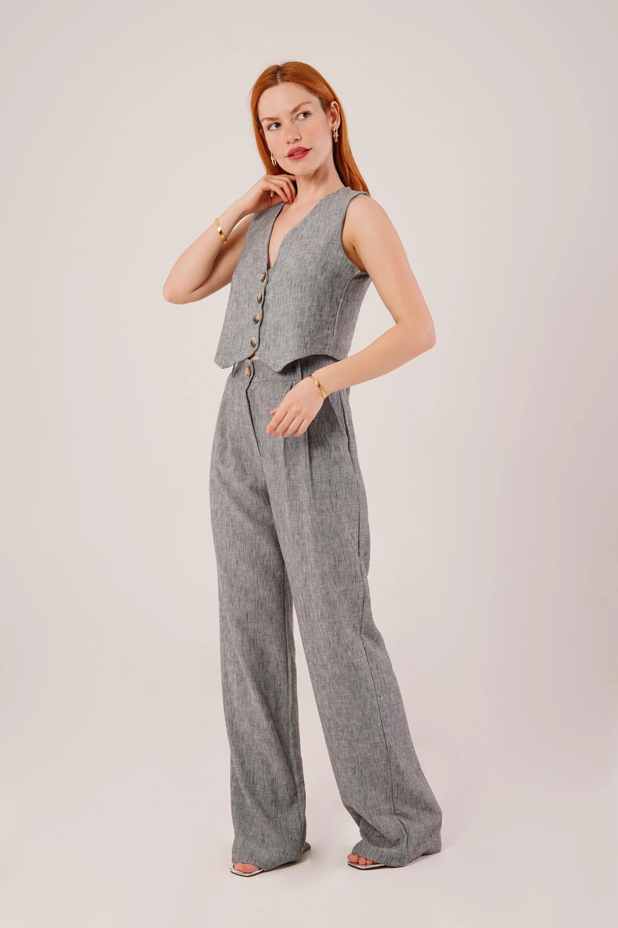 6678 Keten Tunik Pantolon İkili Takım - Bej