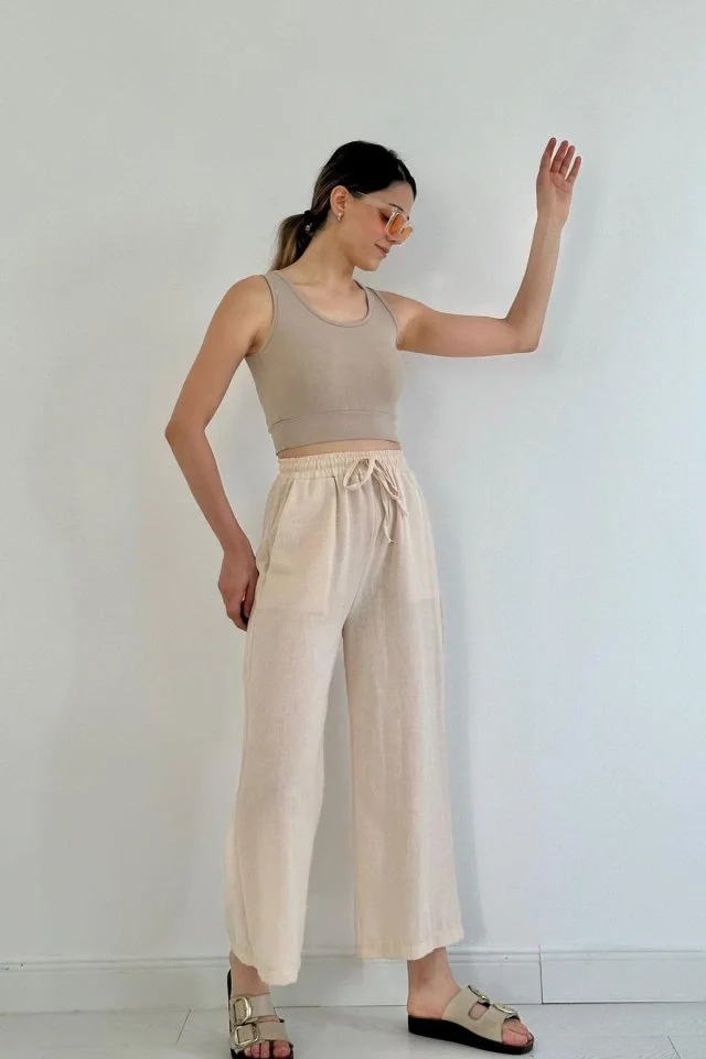 Bej Keten Pantolon
