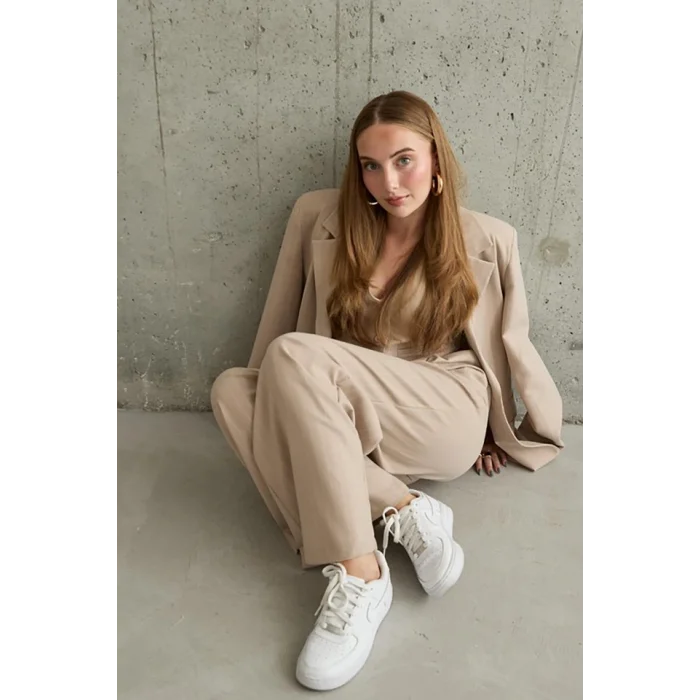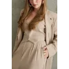 Kadın Vatkalı Omuzlar Pileli Kısa Kol Sandy Kumaş Bluz