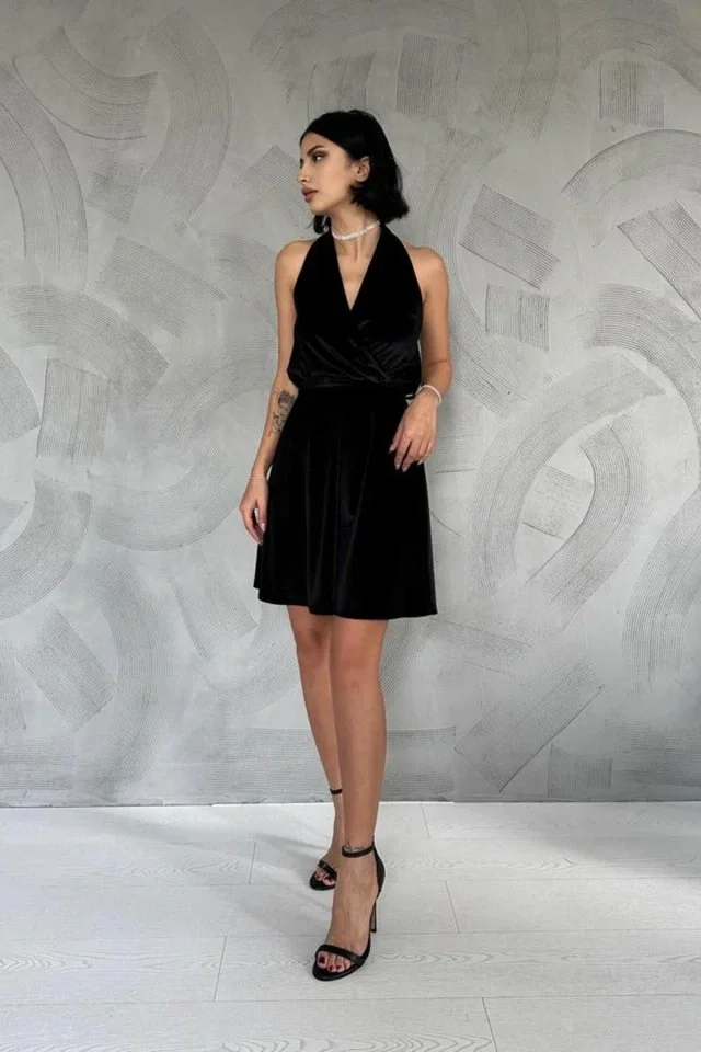 Siyah Boyundan Geçmeli Elbise