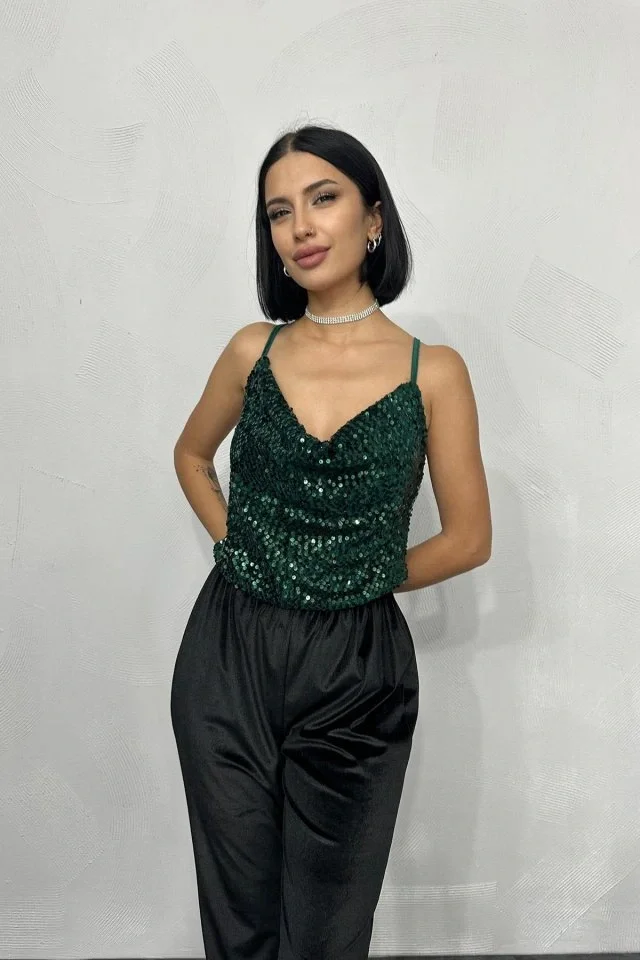 Zümrüt Askılı Degaje Bluz