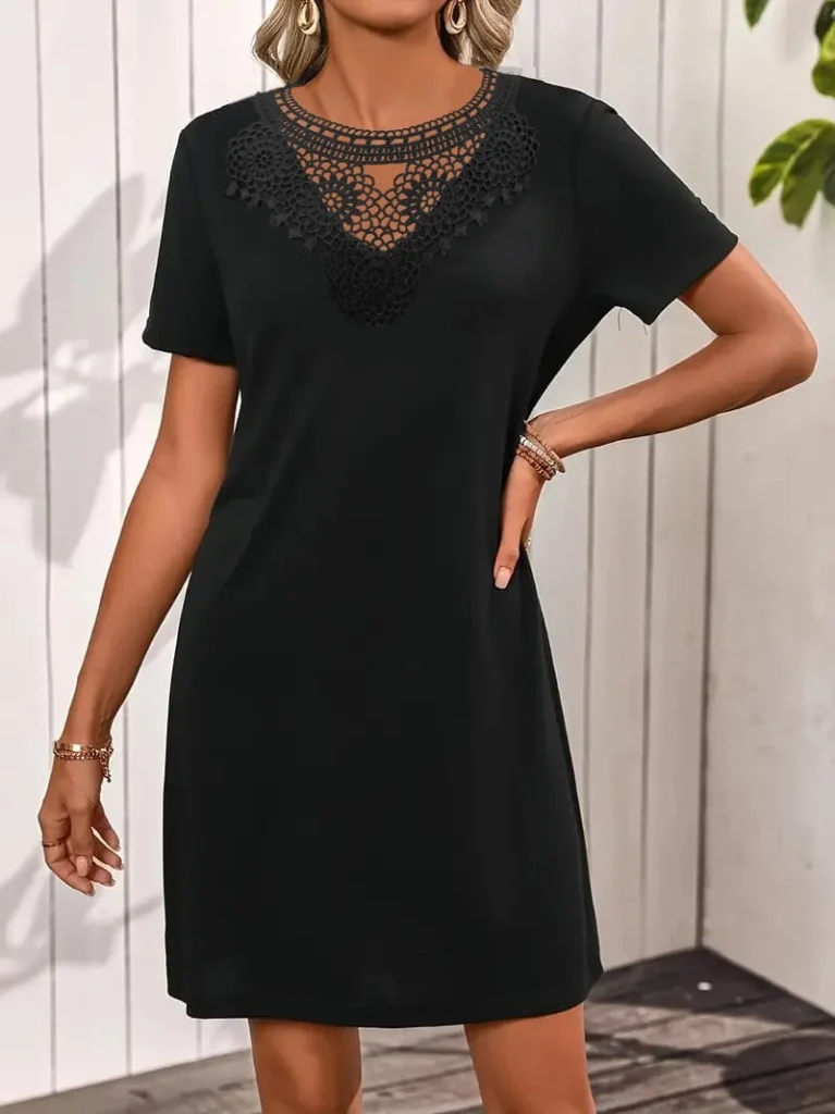 Kadın Kısa Kollu Dantel Yakalı Kısa Viskon Elbise