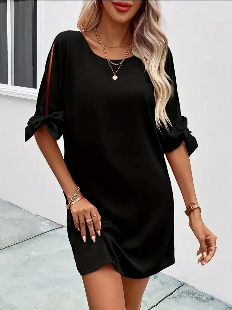 Kadın Kısa Kollu Kolu Bağlamalı Yakası Açık Janjan Elbise
