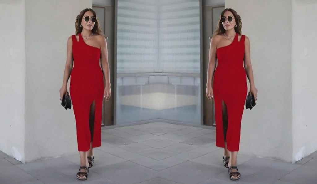 Kadın Ip Askılı Kruvaze Yakalı Derin Dekolteli Yırtmaçlı Ithal Krep Elbise
