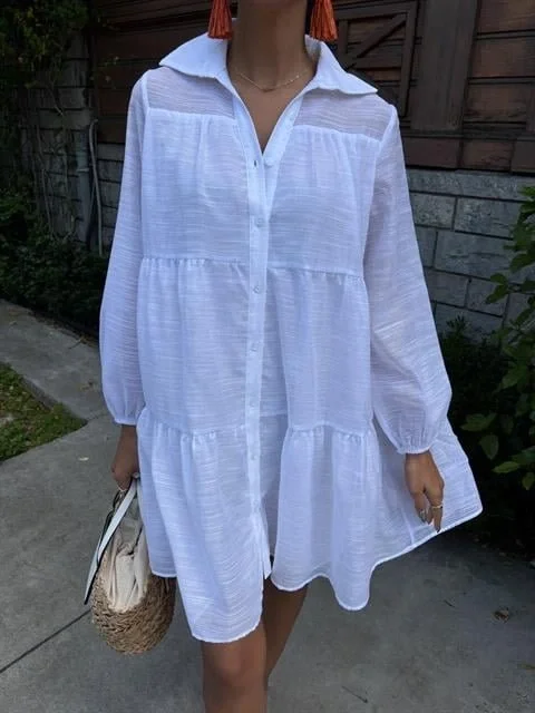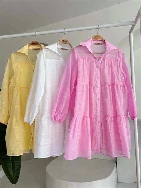 Gömlek Yaka Pileli Elbise 2898