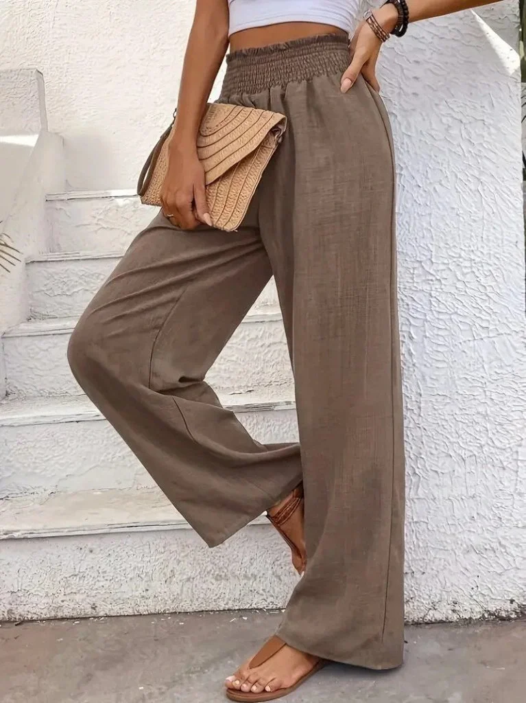 Kadın Yüksek Bel Lastikli Ithal Krep Pantolon