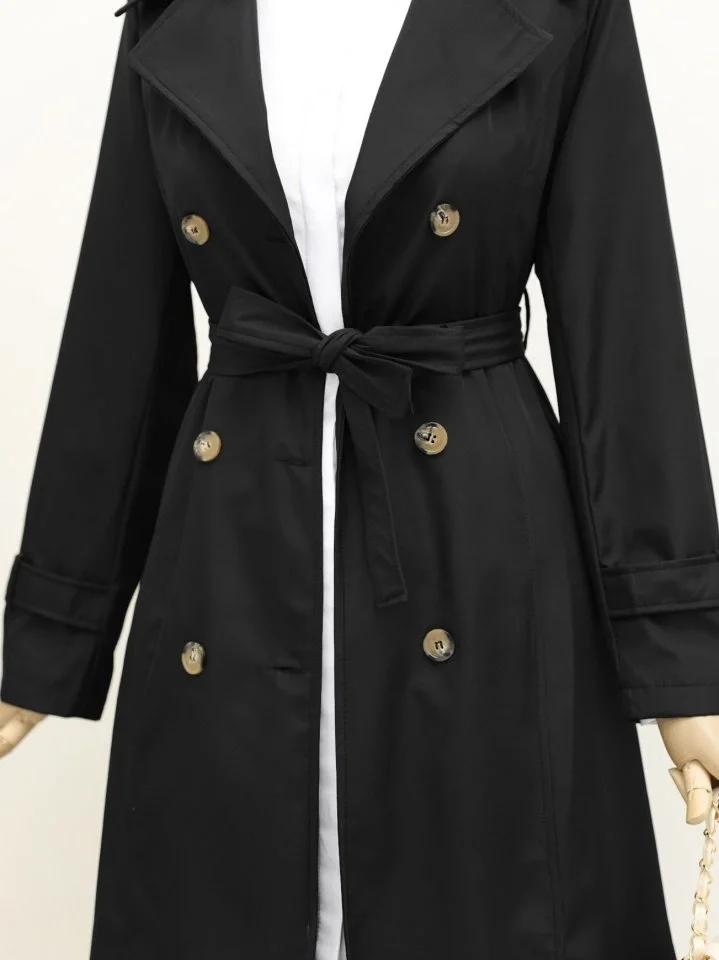 Astarlı Kemerli Trenckot -Siyah