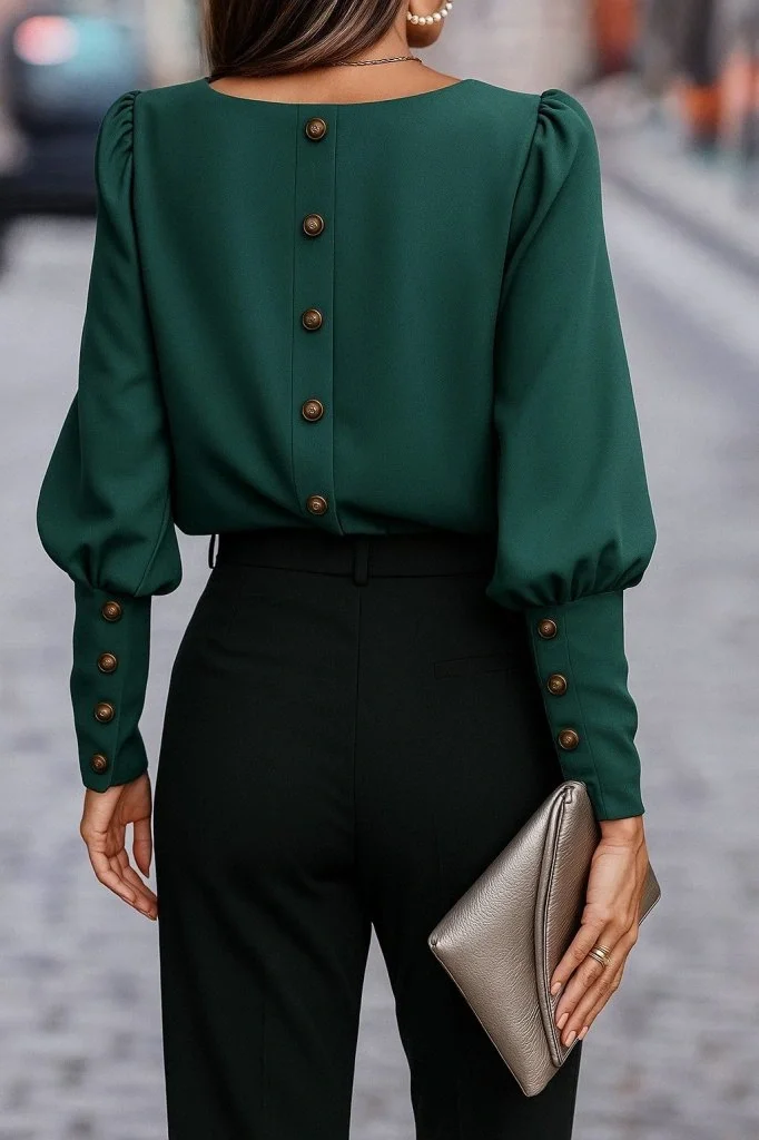 Kadın Uzun Kollu Yuvarlak Yakalı Düğmeli Ithal Krep Bluz