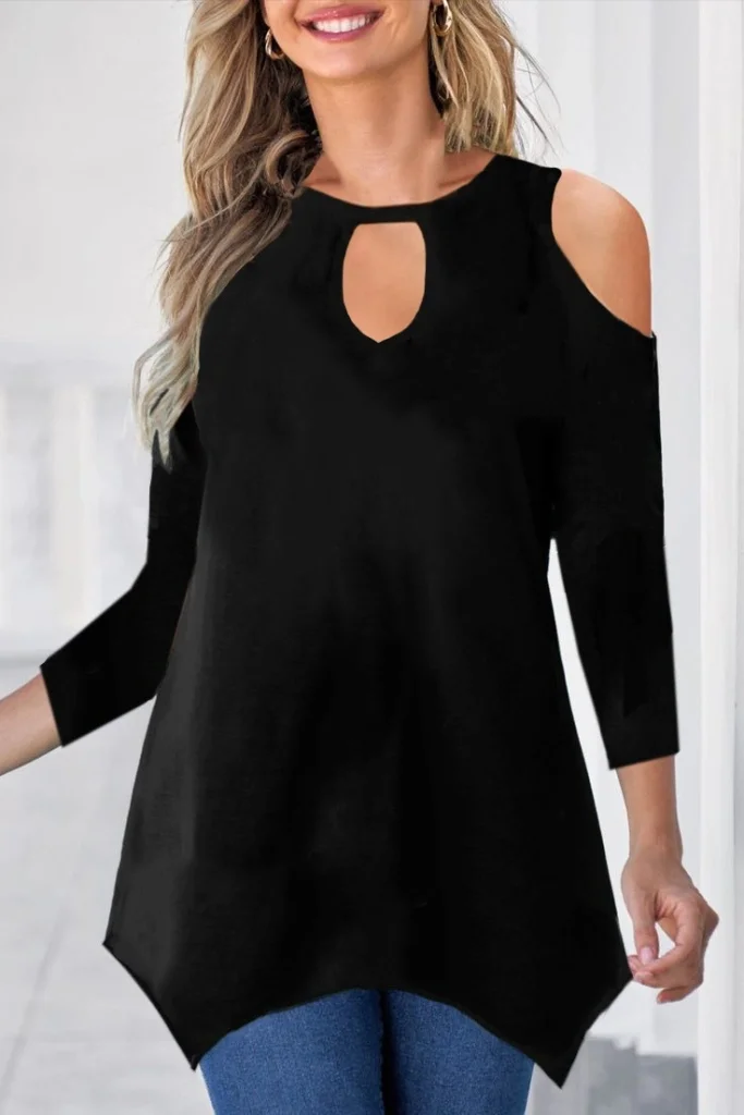 Kadın Uzun Kollu Omuz Ve Göğüs Dekolte Detay Viskon Bluz