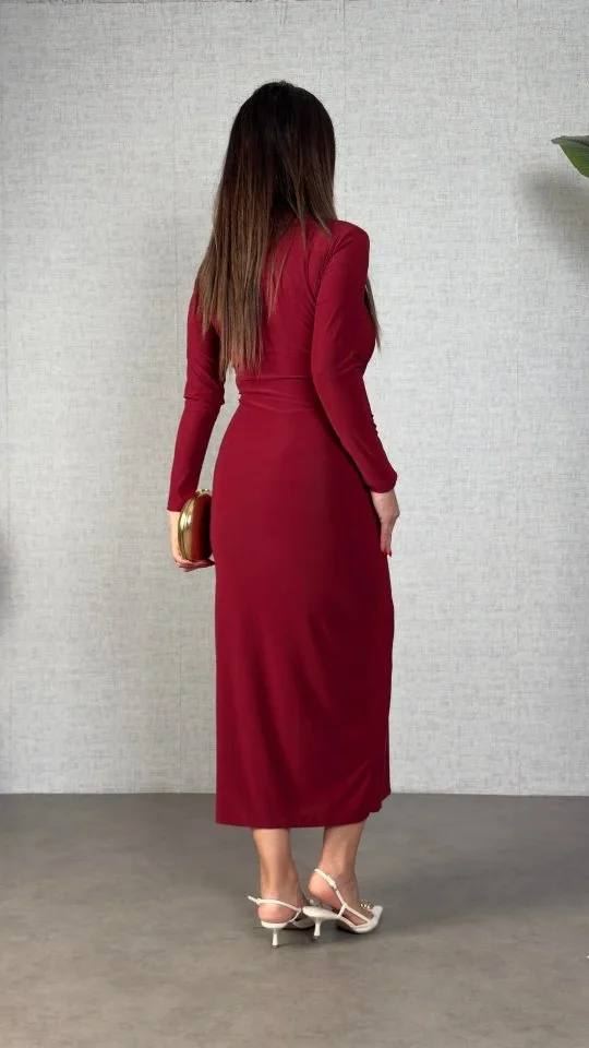 Kadın Truvakar Kollu V Yakalı Yırtmaçlı Uzun Aerobin Elbise