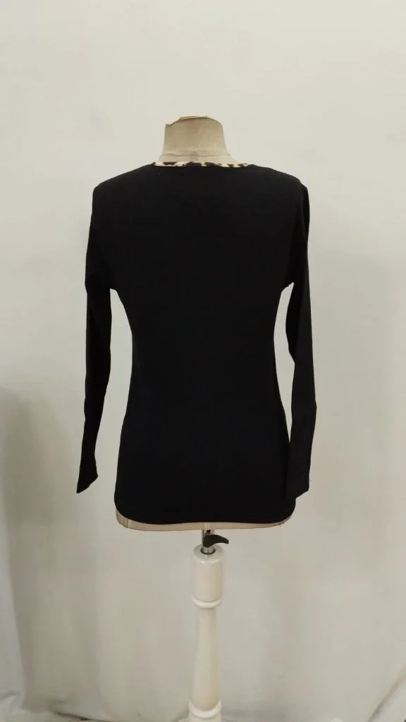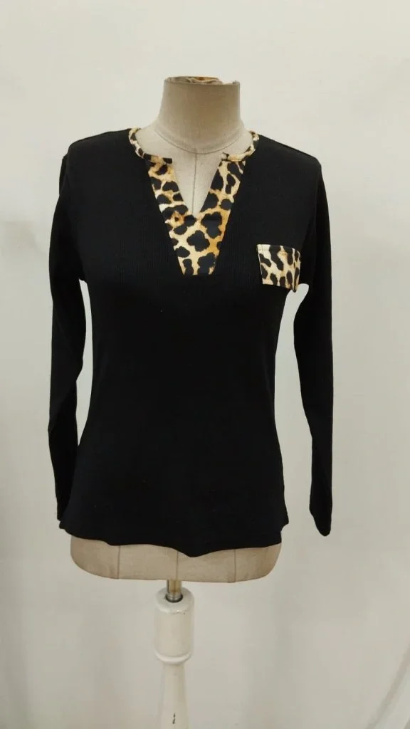Kadın Leopar Desen Fermuar Detay Viskon Kumaş Bluz