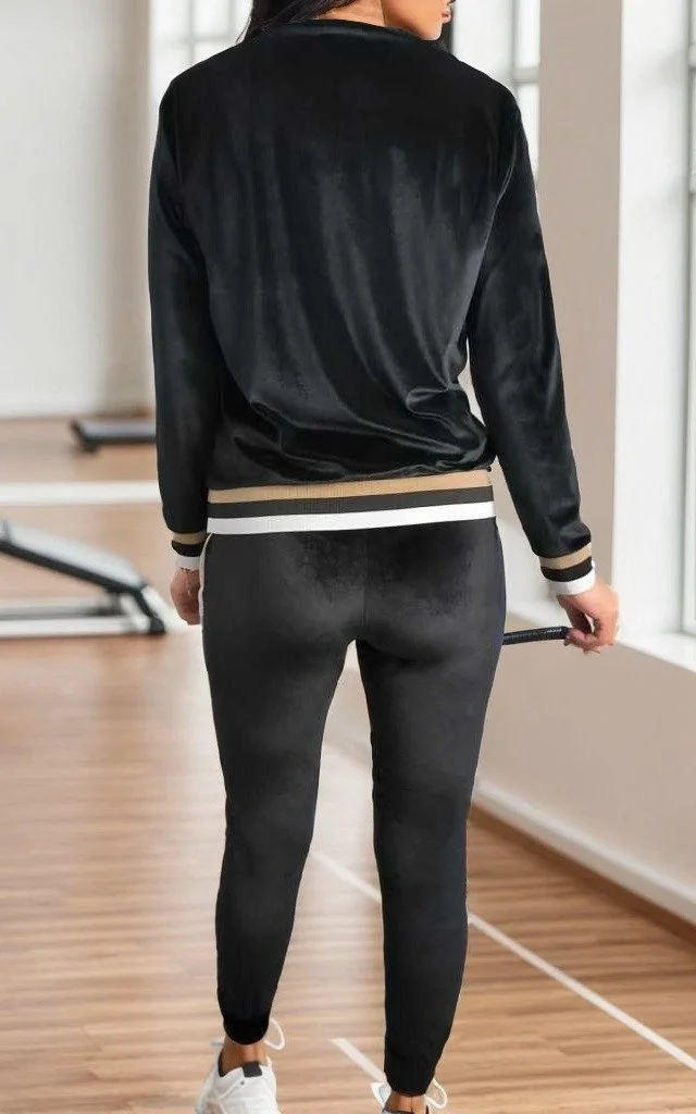 Kadın Uzun Kollu V Yaka Yakası Ve Kol Ağzı şerit Detay Kadife Takım