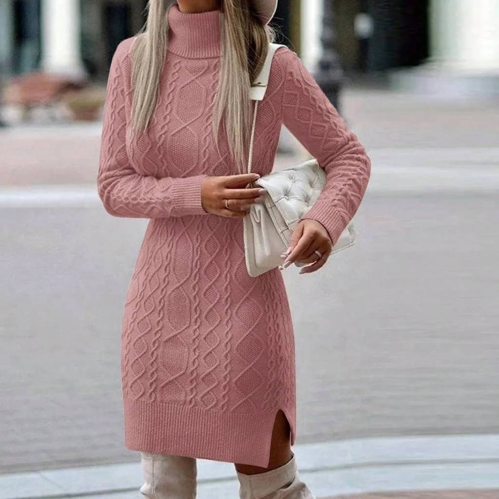 Kadın Uzun Kollu Bisiklet Yaka Yırtmaç Detay Triko Midi Boy Elbise