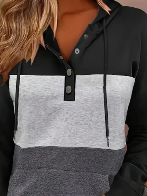 Kadın Uzun Kollu Kapşonlu çok Renkli Iki Iplik Bluz