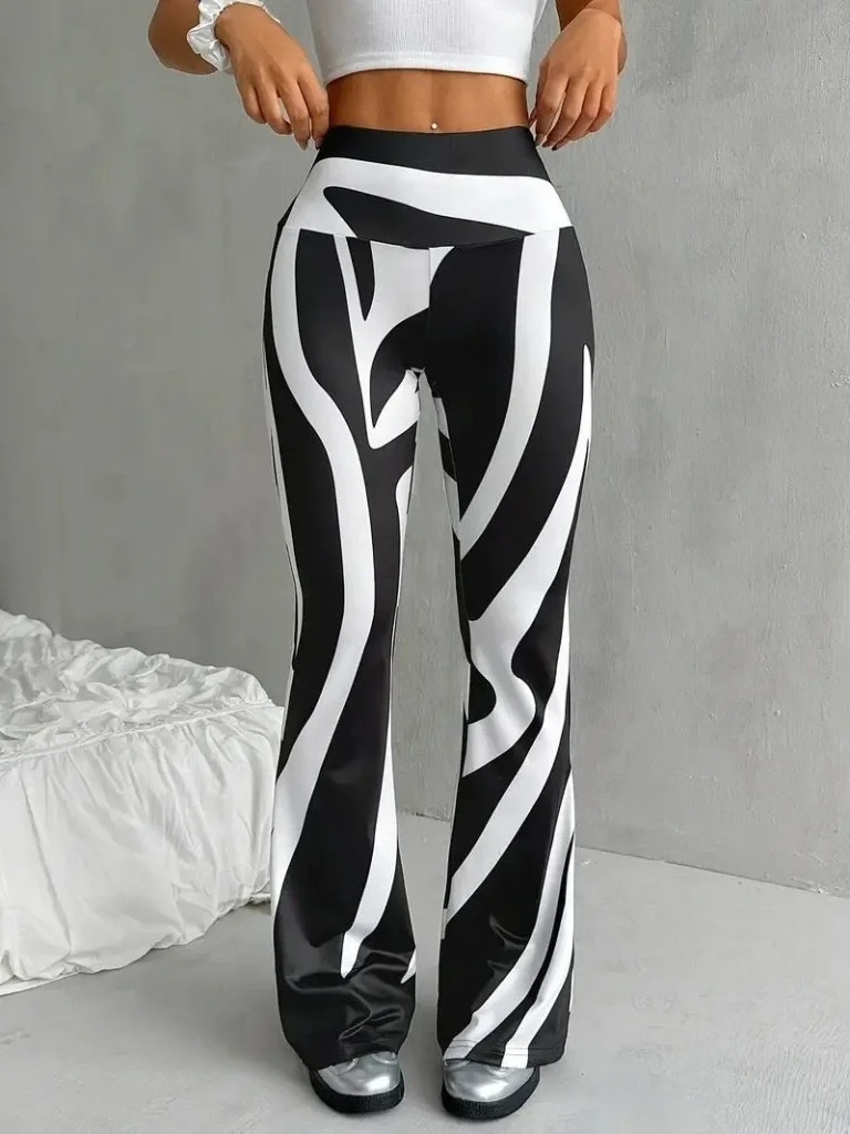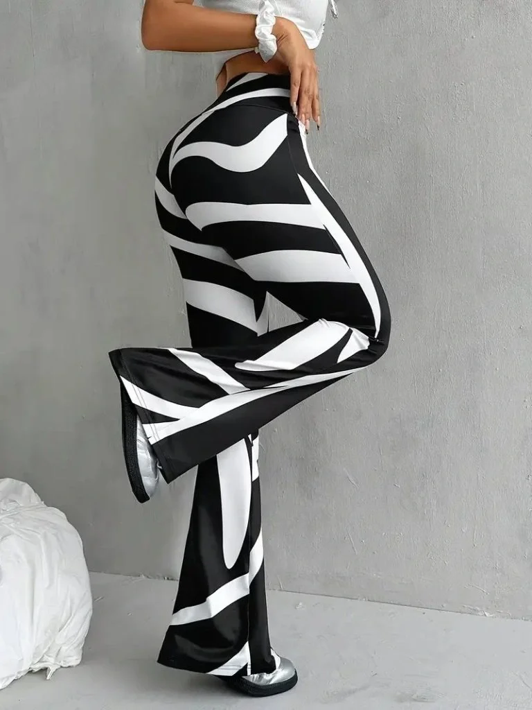 Kadın Yüksek Bel Zebra Desenli Dalgıç Tayt