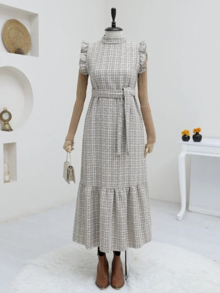 Kolları Fırfırlı Kemerli Tuvit Jile -Vizon