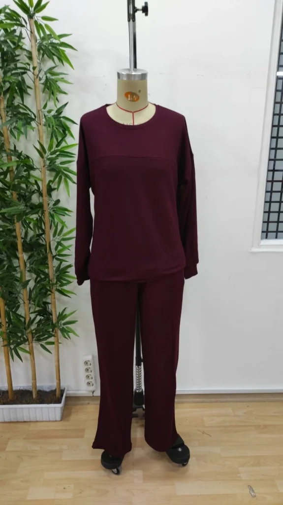 Kadın Uzun Kollu Bisiklet Yaka Viskon Iki Iplik Bluz Ve Pantolon Ikili Takım