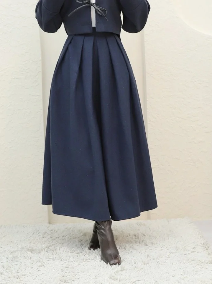 Pileli Fermuarlı Kaşe Etek -Laci