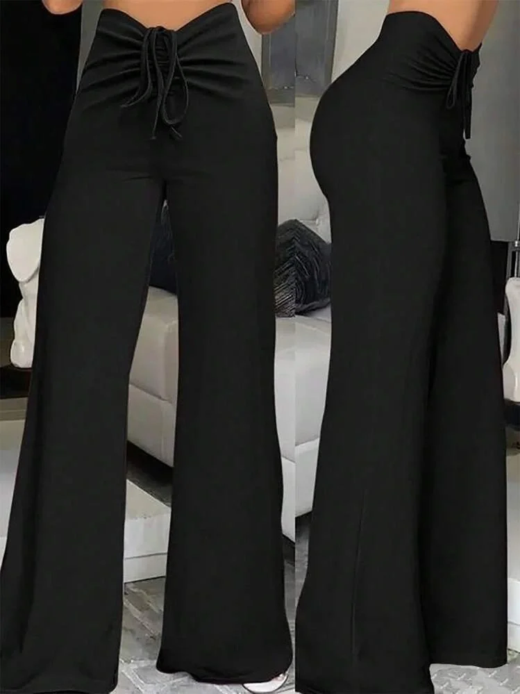 Kadın Yüksek Bel Beli Fırfırlı önden Bağlamalı Ithal Krep Pantolon