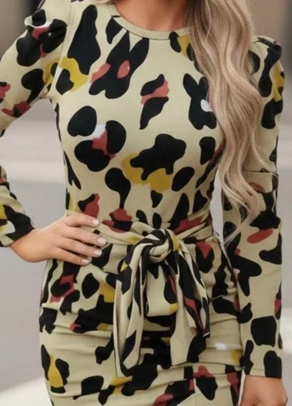 Kadın Uzun Kollu Yuvarlak Yaka Belden Kuşaklı önden Yırtmaçlı örme Krep Elbise