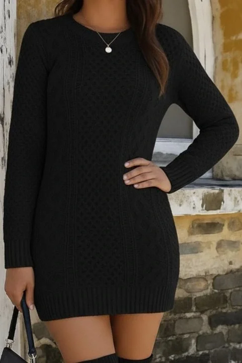 Kadın Uzun Kollu Bisiklet Yaka Triko Elbise