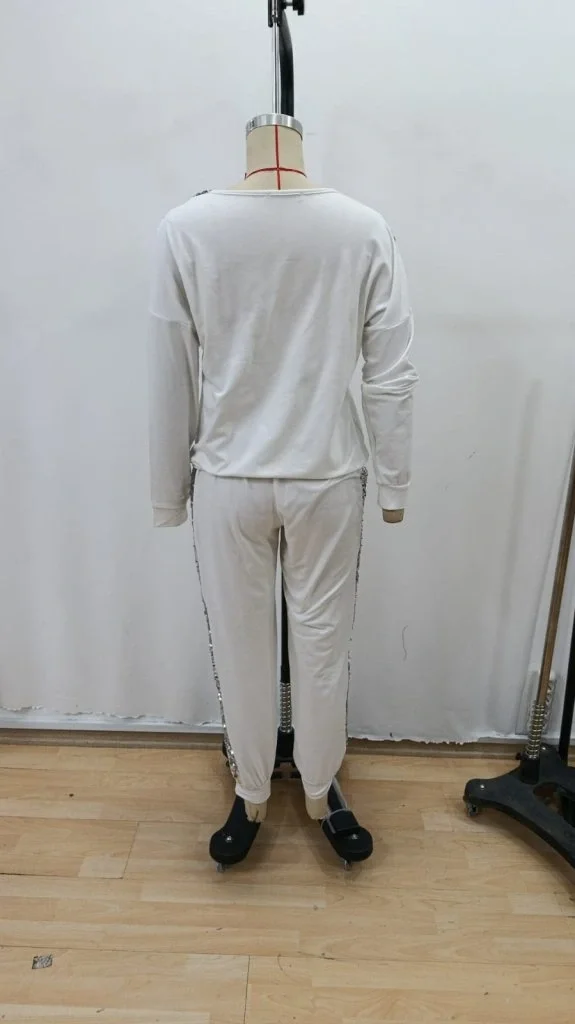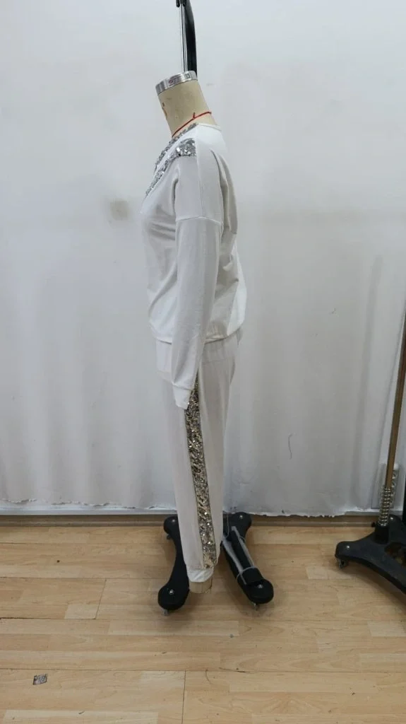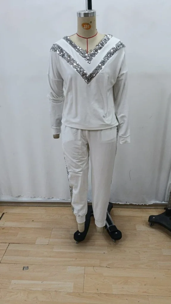 Kadın Uzun Kollu V Yakalı Pulpayet Viskon Iki Iplik Bluz Ve Pantolon Takım
