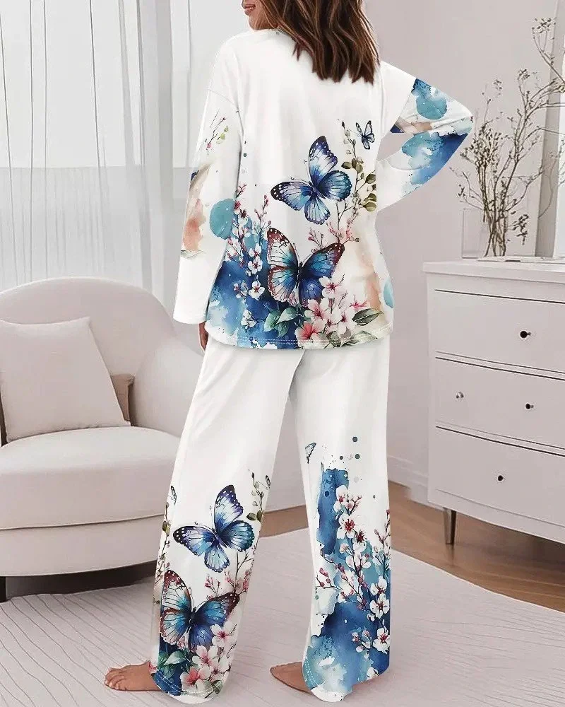 Kadın Uzun Kollu Bisiklet Yaka Kelebek Desenli Iki Iplik Alt üst Takım