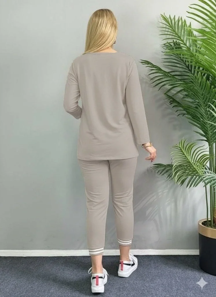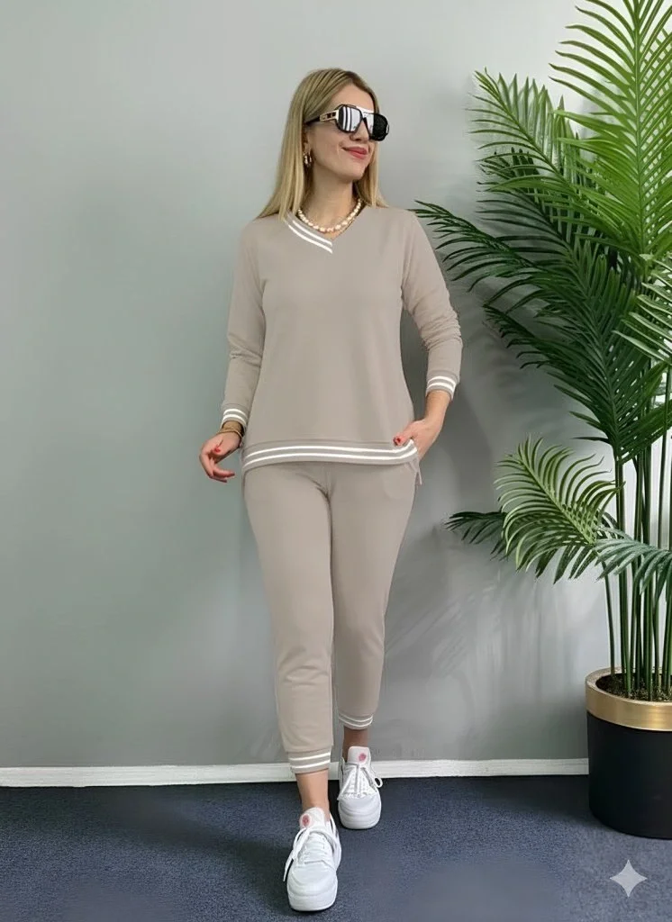 Kadın Uzun Kollu Fermuarlı şerit Detay Desenli Alt üst Ikili Viskon Iki Iplik Takım
