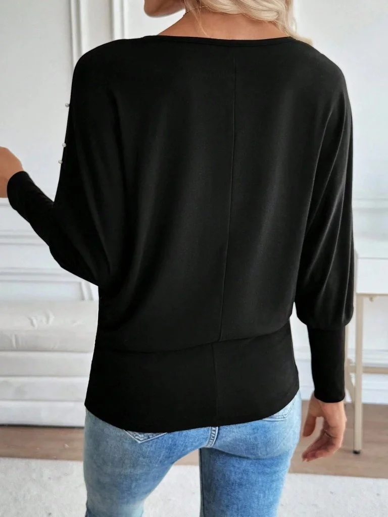 Kadın Uzun Kollu Yuvarlak Yaka Incili Viskon Bluz