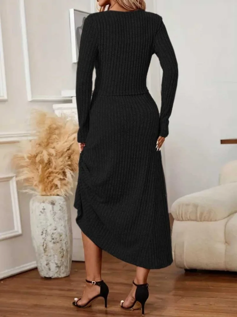 Kadın Uzun Kollu önden Düğmeli Bluz Ve Yüksek Bel A Kesim Uzun Etek şardonlu Kaşkorse Ikili Takım