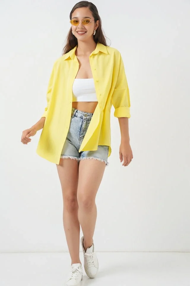 3900 Oversize Uzun Basic Gömlek - Sarı