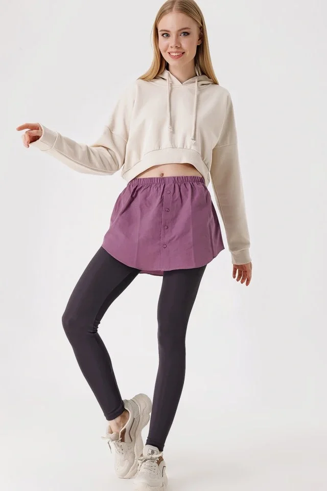 1888 Sweatshirt Ve Kazak Altı Gömlek Etek - Koyu Lila