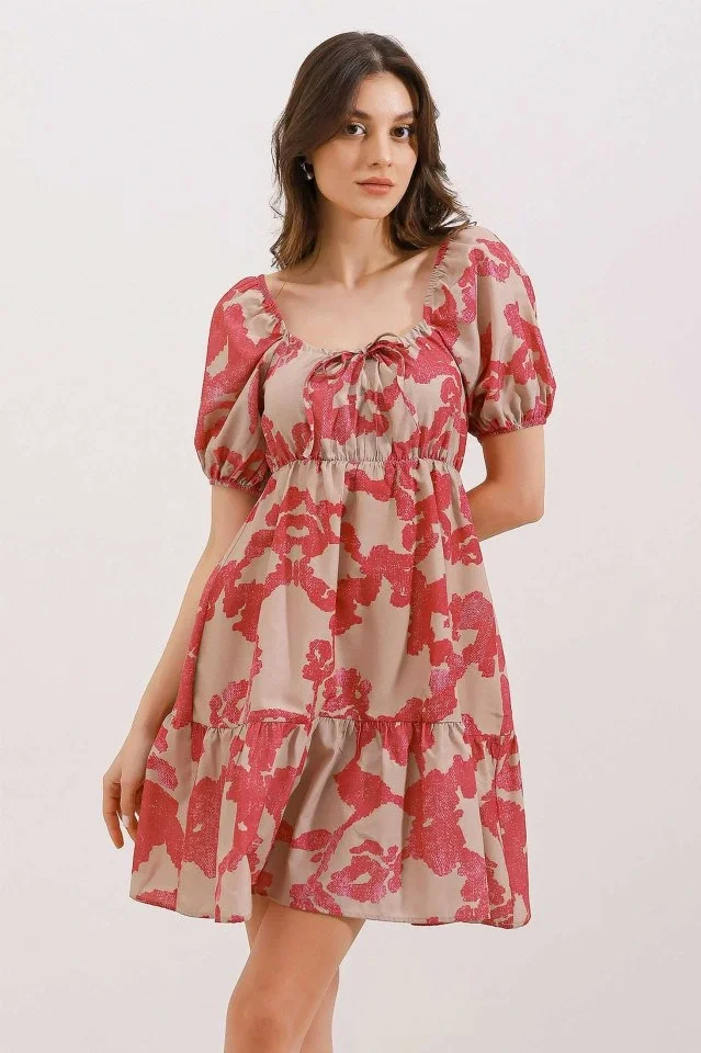 2351 Kloş Poplin Elbise - D. Fuşya