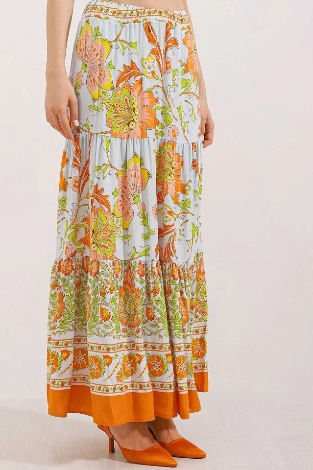 1898 Desenli Uzun Etek - Turuncu