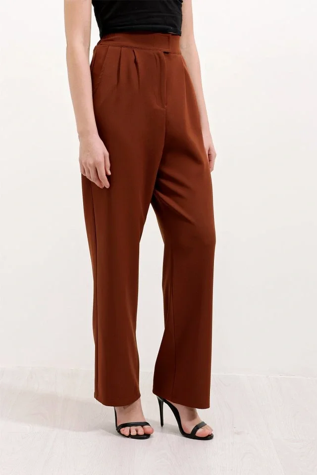 Kahverengi Yüksek Bel Kumaş Pantolon 6612