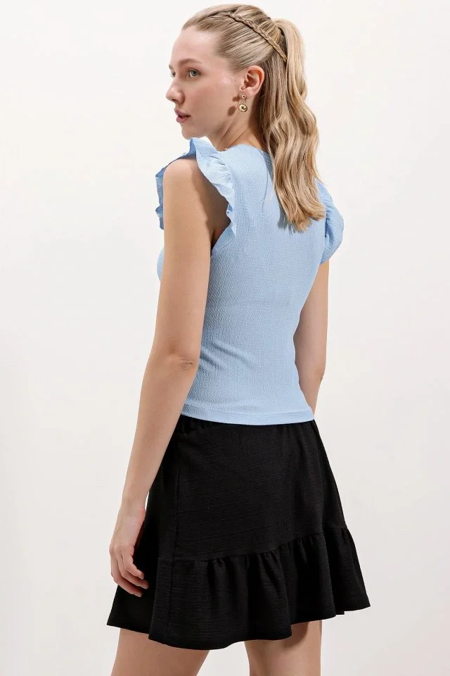926 Yaka Detaylı Kısa Kol Bluz - Siyah