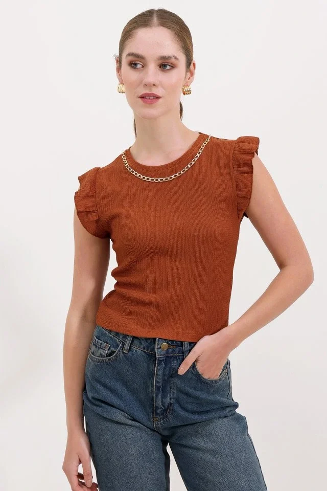 0430 Örme Bluz - Taba