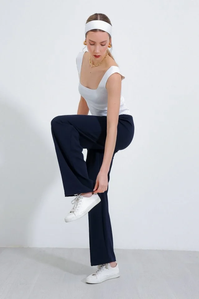 Lacivert Bol Paça Çımalı Pantolon 6662