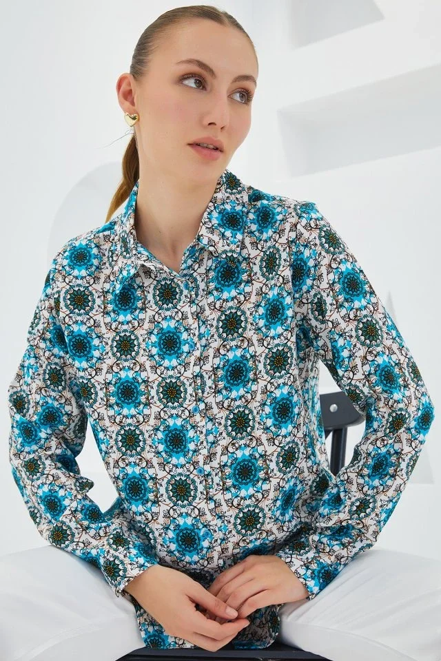 3721 Grafik Desenli Gömlek - B.Mavi